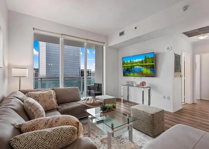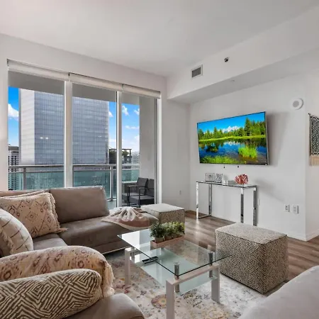 The welcoming 47Th-Floor Brickell Condo With City Views And Pool Miami lies in an entertainment area, merely 0.9 km from the Knight International Center and within 25 minutes' walk of the two - story open air shopping center "Bayside Marketplace". Guests can use Wi-Fi for either business or leisure reasons.